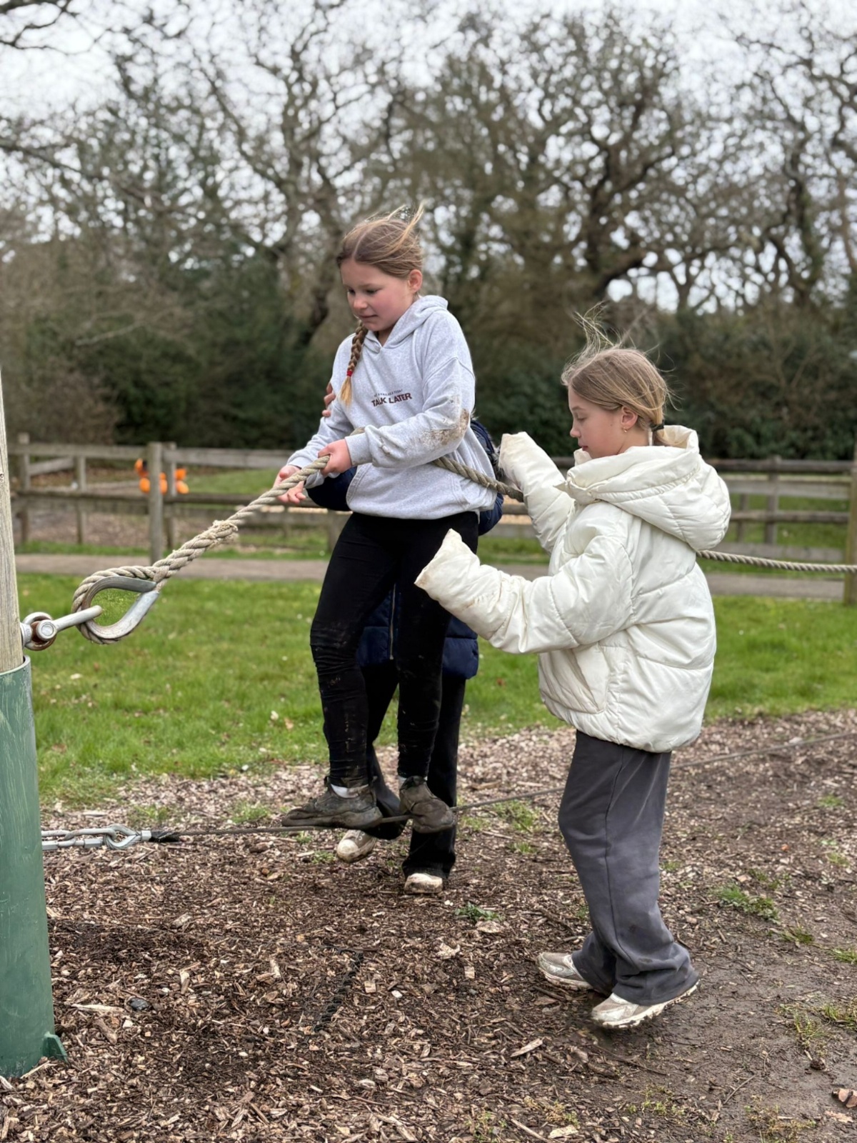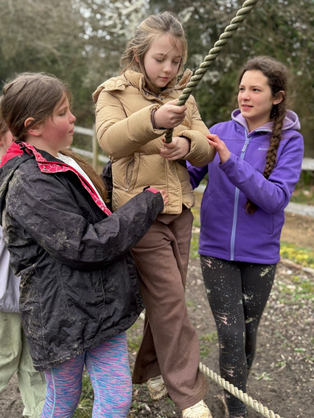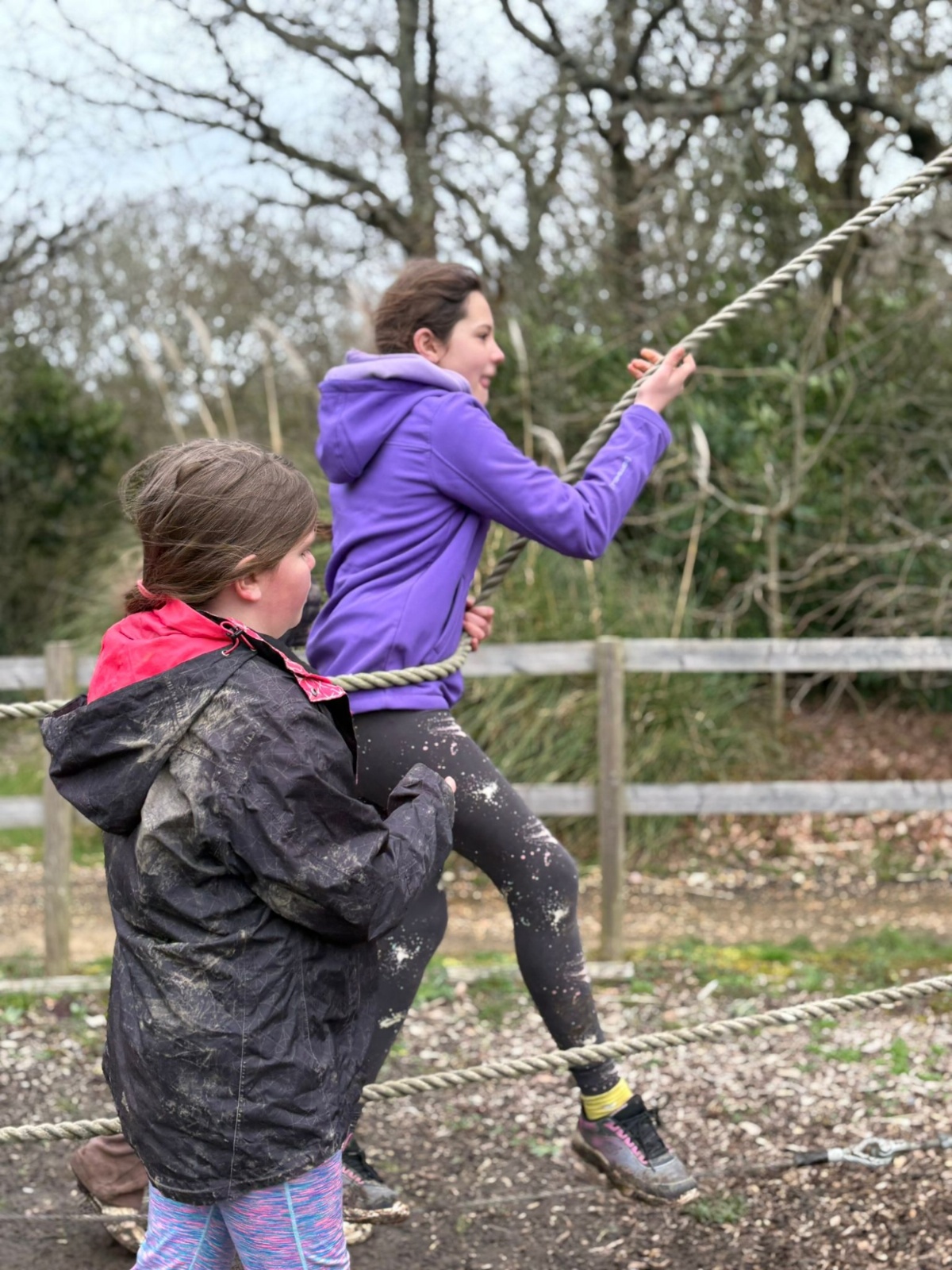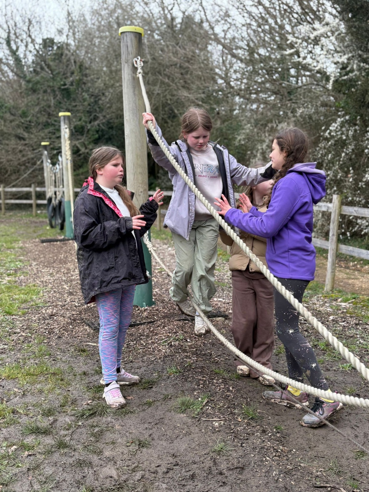 We have been blessed with the weather again today, although you wouldn't know it if you saw the muddy children following the sensory walk this morning. We had a great morning of climbing Jacob's Ladder and then the sensory walk. It has been a morning reliant on teamwork. Jacob's ladder sees the children needing to work like a team to progress to the top of the structure with the beams getting further apart the higher they climb. There was some splendid working together going on to get up the ladder. The sensory walk is when the children are blindfolded with blackout goggles and they have to rely on their other senses, including listening to their teammates, to navigate the course. Again wonderful to see the children working together so well to overcome the obstacles.