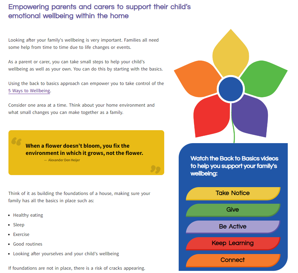 Back to Basics is a really useful site which has excellent short videos and helpful suggestions to help parents ann children with mental health. https://www.hants.gov.uk/socialcareandhealth/childrenandfamilies/back-to-basics