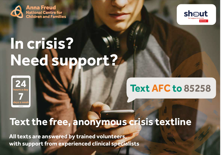 IF YOU ARE IN IMMEDIATE CRISIS PLEASE TEXT AFC TO 85258.